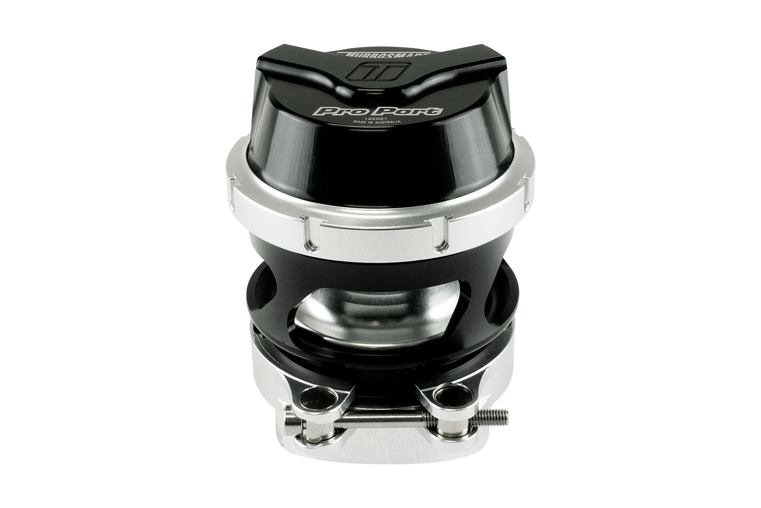 ProPort by Turbosmart is an all-new 54mm (2.13in) Blow-off Valve with a tiny footprint and massive flow. The ProPort flows 420 cfm, enough for 3500 HP and is in a league of its own, standing 30mm (1.2in) lower than PowerPort while flowing over 25% more than the Market leading 50mm RacePort. Features include our unique locking collar design, new unique vent profile, sensor cap option and spring options for all turbocharged and supercharged applications.