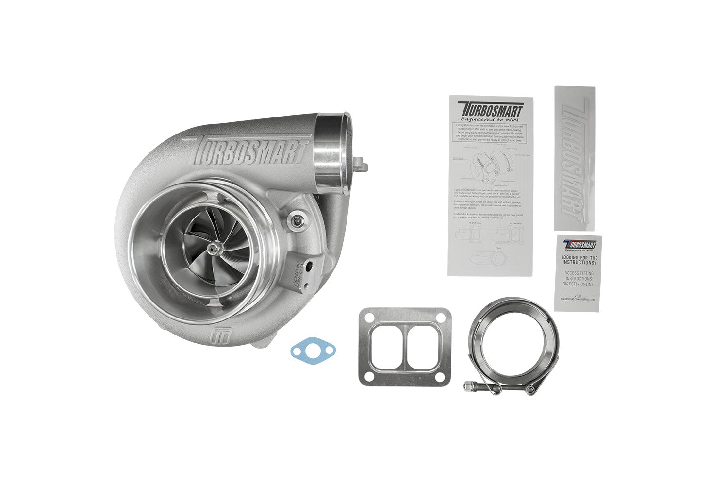 Every Turbosmart turbocharger comes standard with everything you need for installation, weld flanges, V-band clamps, gaskets, oil feed and drain fittings as well as water feed and return fittings are included.